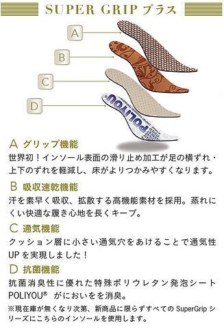 更に進化したSuperGrip プラス+のインソールにはグリップ効果以外に